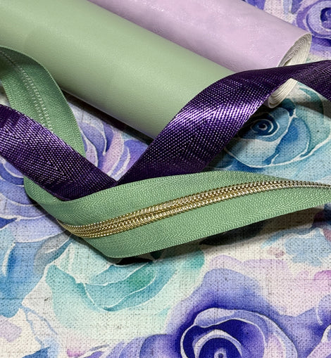 3 yards of Eucalyptus w/ Gold teeth zipper
