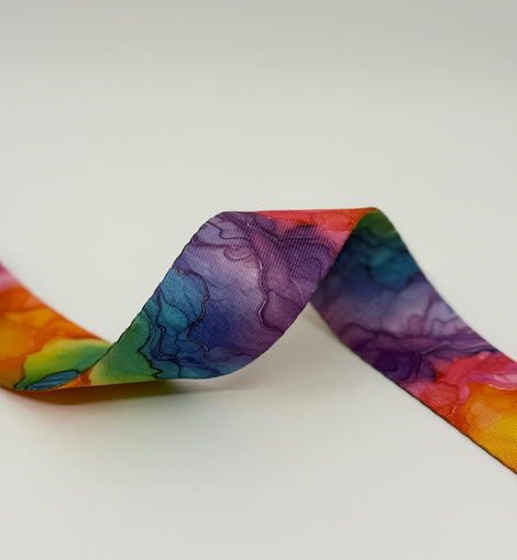 • 1.5" Custom Webbing - Rainbow Watercolor (5 yard cut)