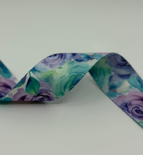 • 1.5" Custom Webbing - Watercolor Roses (5 yard cut)